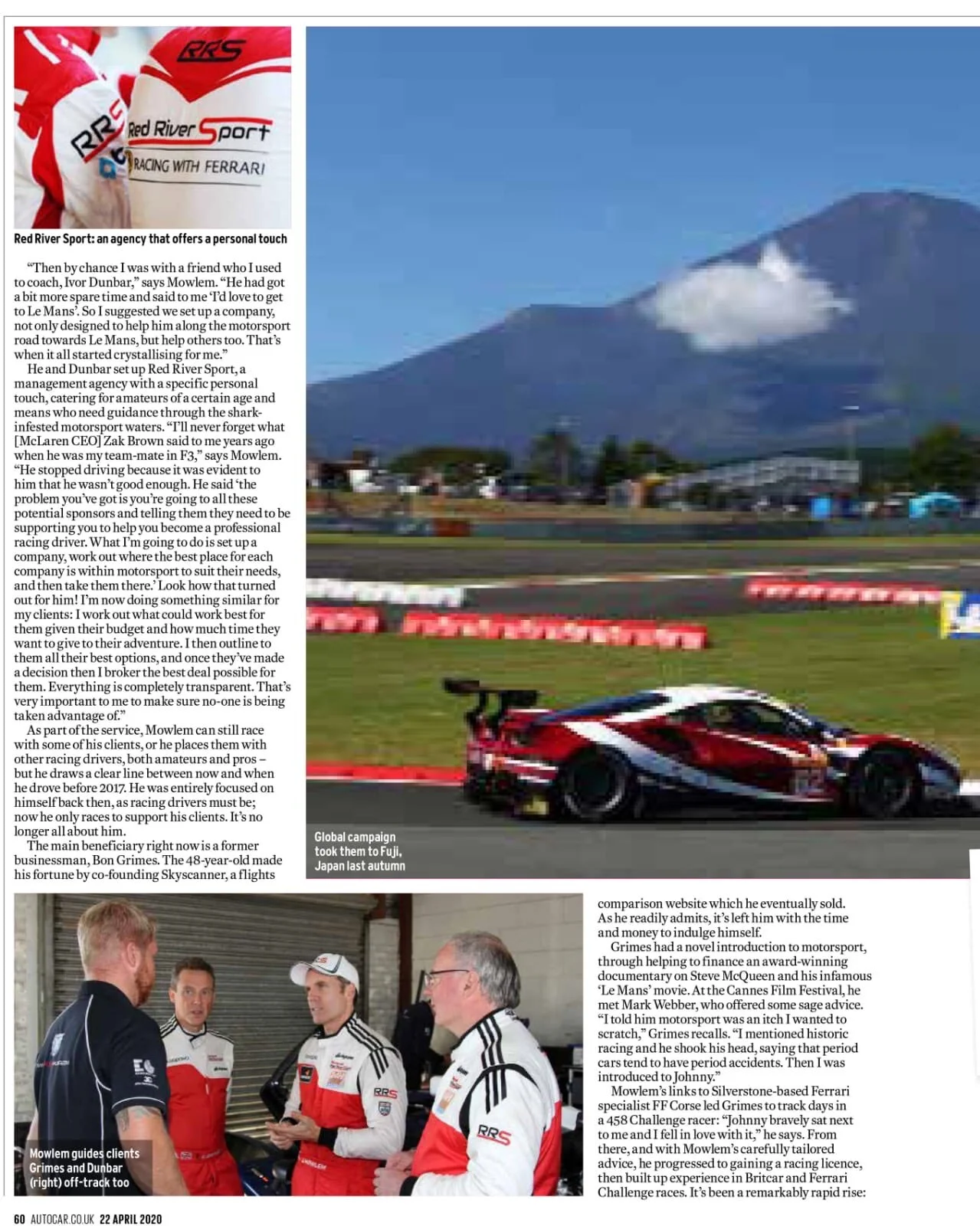 Red River Sport: an agency that offers a personal touch “Then by chance I was with a friend who I used to coach, Ivor Dunbar,” says Mowlem. “He had got a bit more spare time and said to me ‘I’d love to get to Le Mans’. So I suggested we set up a company, not only designed to help him along the motorsport road towards Le Mans, but help others too. That’s when it all started crystallising for me.” He and Dunbar set up Red River Sport, a management agency with a specific personal touch, catering for amateurs of a certain age and means who need guidance through the shark-infested motorsport waters. “I’ll never forget what [McLaren CEO] Zak Brown said to me years ago when he was my team-mate in F3,” says Mowlem. “He stopped driving because it was evident to him that he wasn’t good enough.